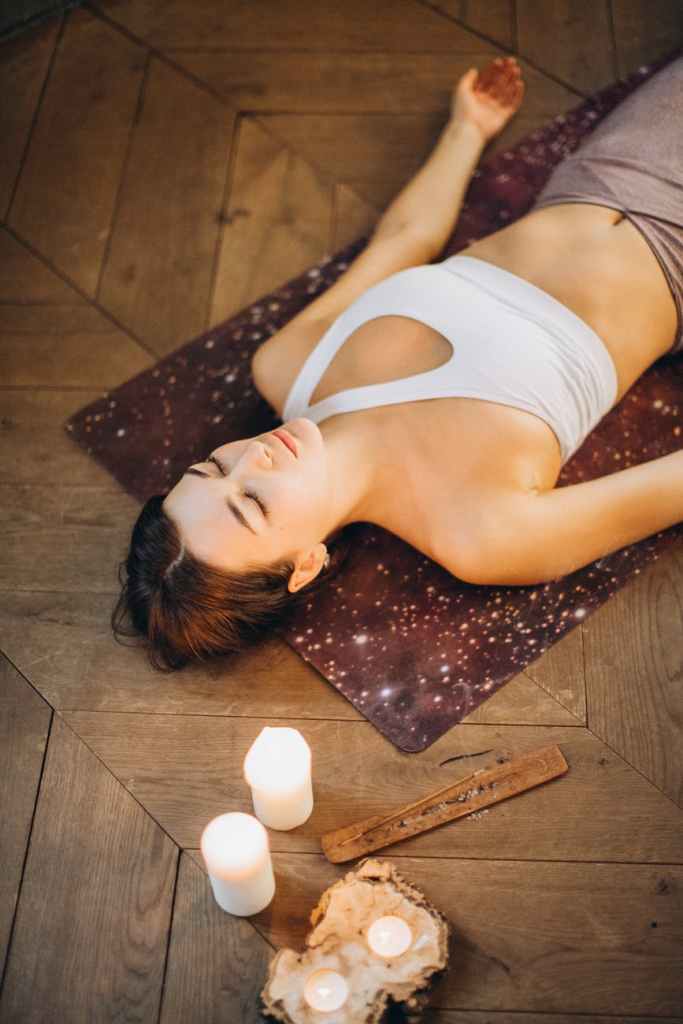 It’s simple. Sit up straight with both feet on the floor. Close your eyes. Focus your attention on reciting — out loud or silently — a positive mantra such as “I feel at peace” or “I love myself.” Place one hand on your belly to sync the mantra with your breaths. Let any distracting thoughts float by like clouds.