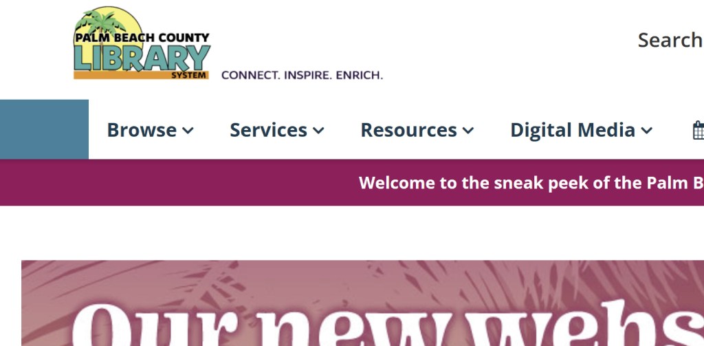 I’m proud to share that the Palm Beach County Library System is upgrading its website. Right now, we are offering a preview of the new site to get feedback from the public. Take a look by visiting: https://palmbeach.bibliocms.com/
